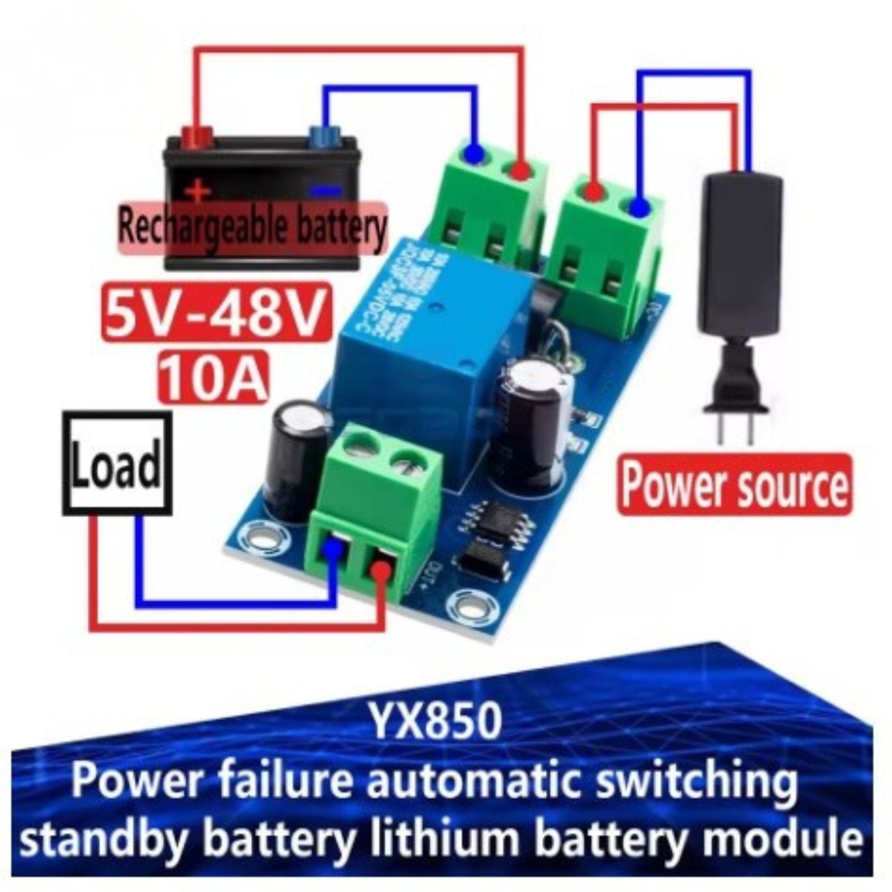 Módulo de batería de litio YX850 con conmutación automática por fallo de alimentación, convertidor de emergencia universal de CC 5 V-48 V