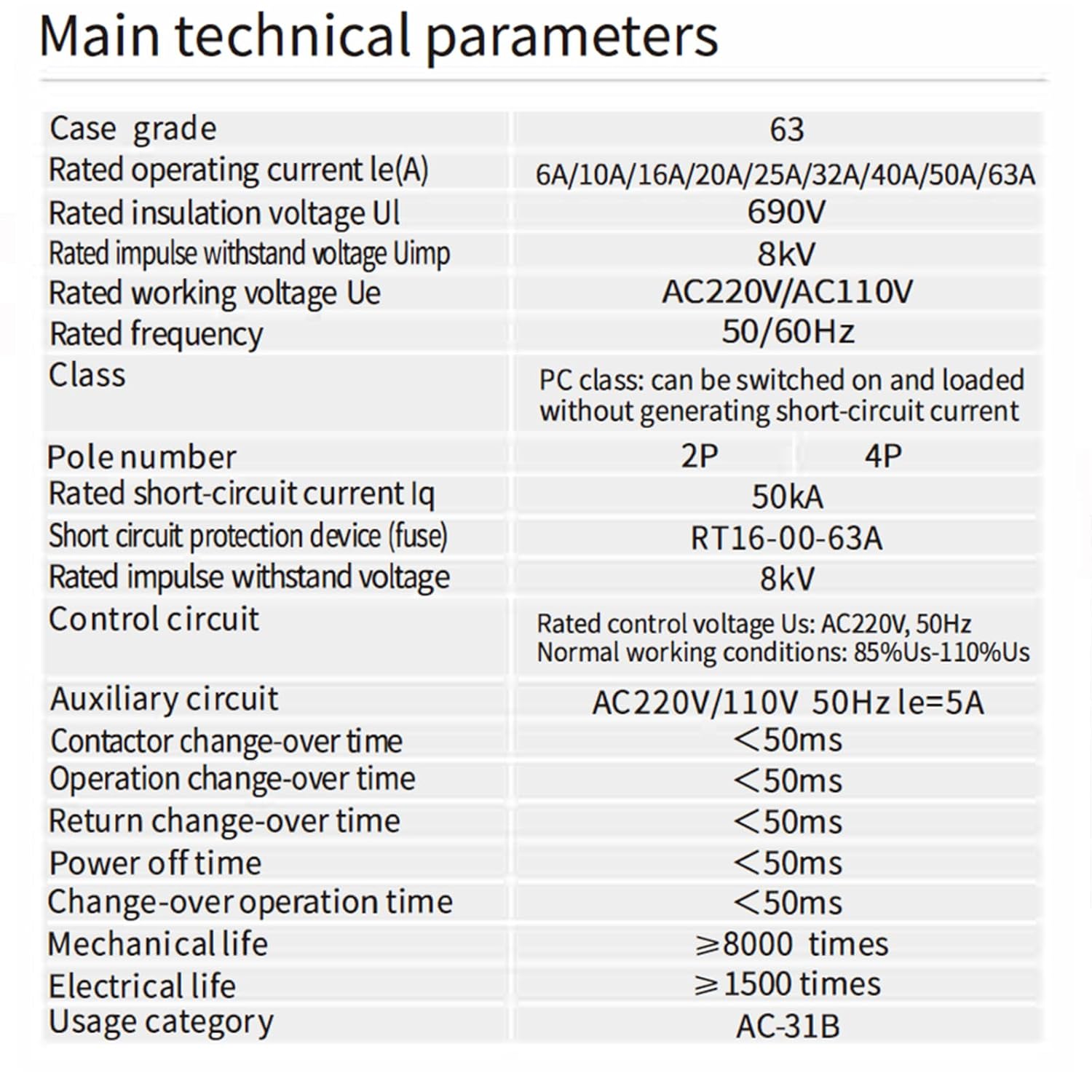 Transferencia automática y manual 4P 63A 220 V, ATS